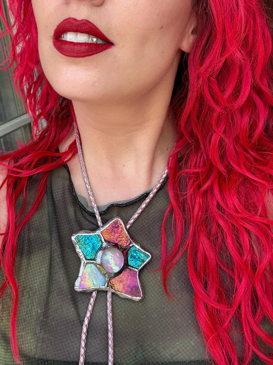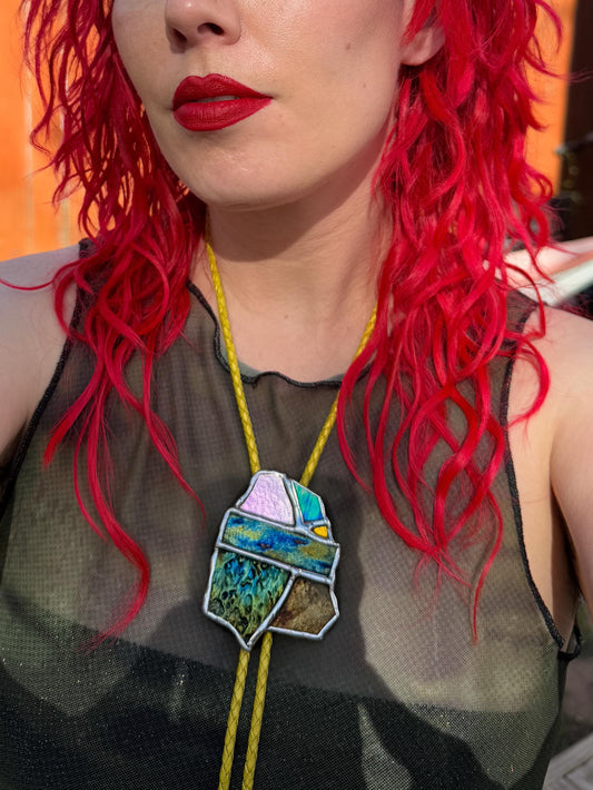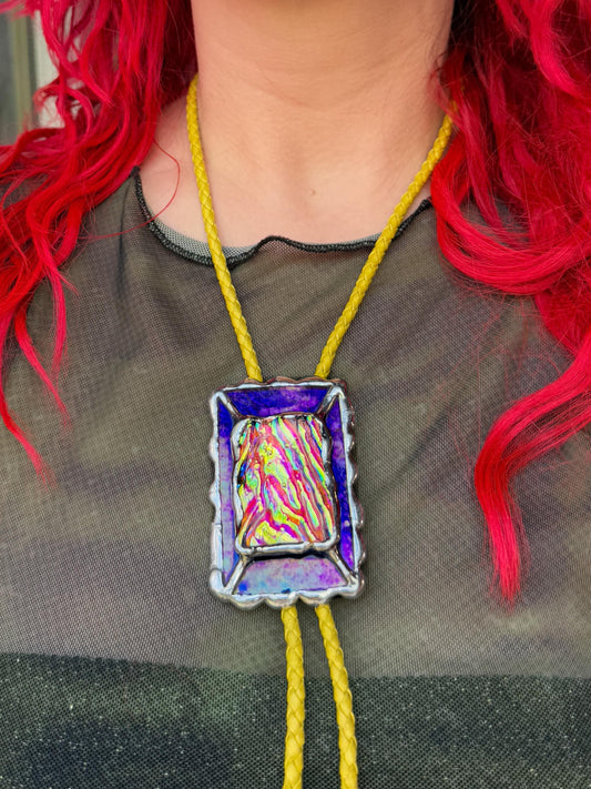 Brutalist Cyber Creature Stained Glass Bolo Tie
