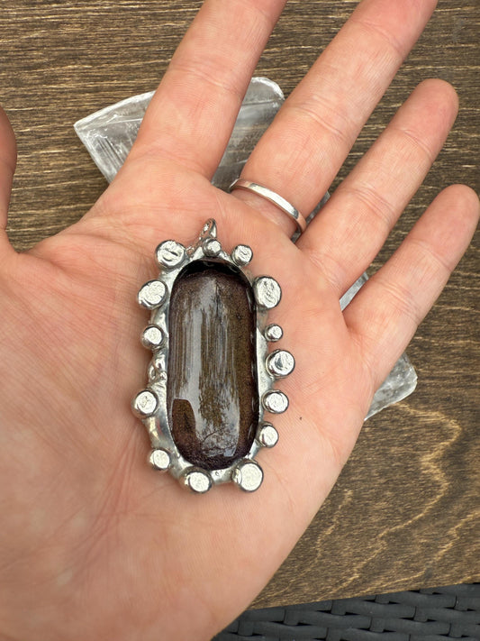 Bronze Gold Iridescent Fused Glass Pendant | Cyber Brutalist Handmade Wearable Art + Whimsigoth Fashion
