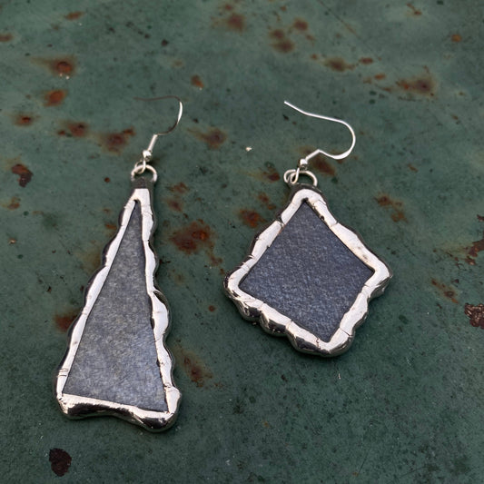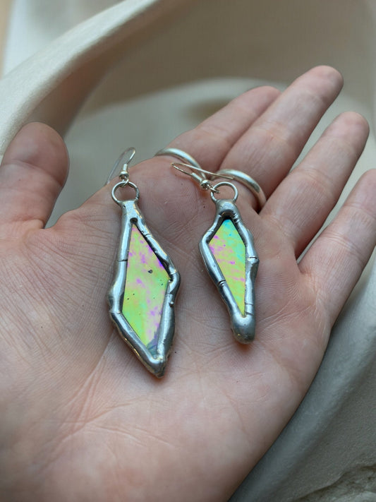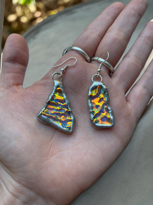 Asymmetrical Chrome Portals Stained Glass Earrings