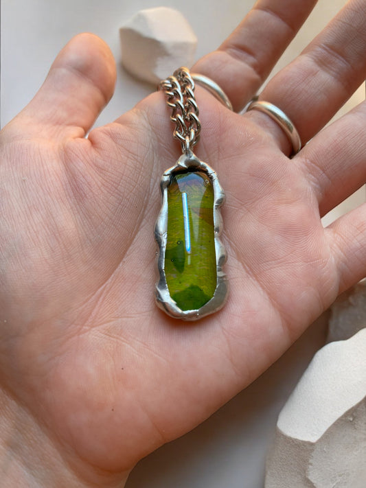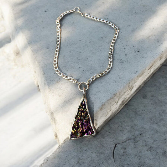 Cloud Triangle | Iridescent Stained Glass Drop Necklace
