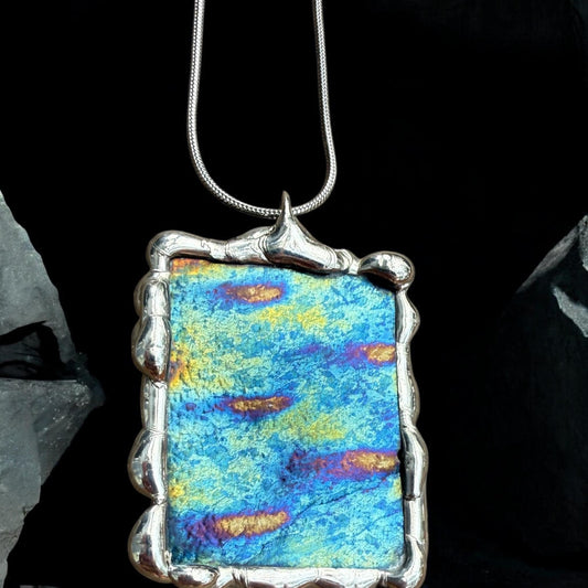 Iridescent Stained Glass Necklace | Geometric Handmade Wearable Art + Whimsigoth Fashion