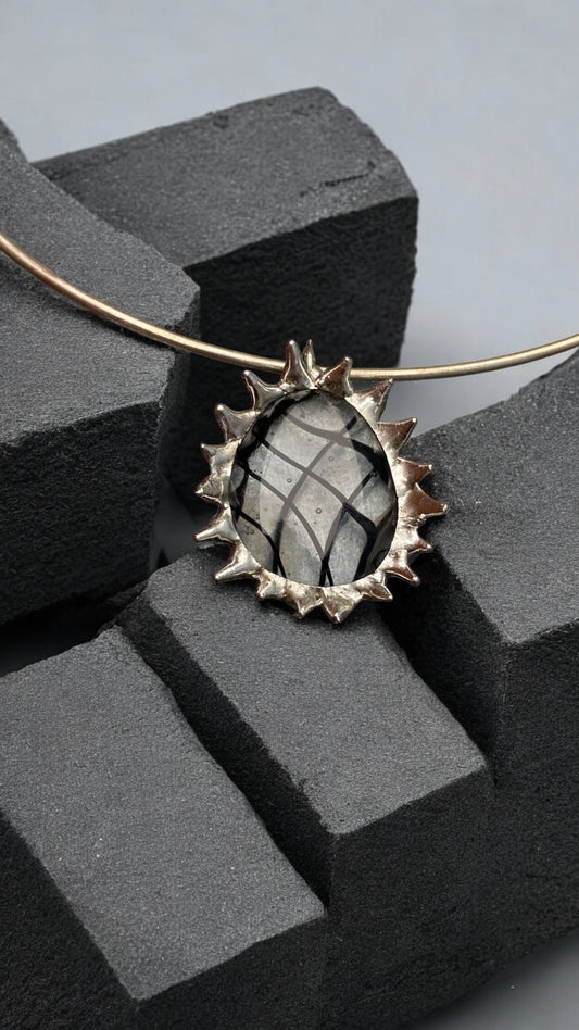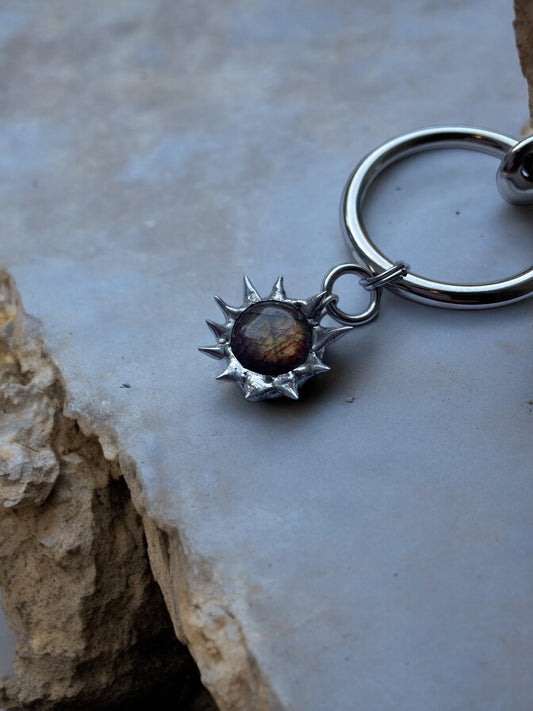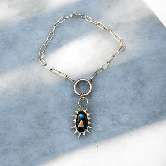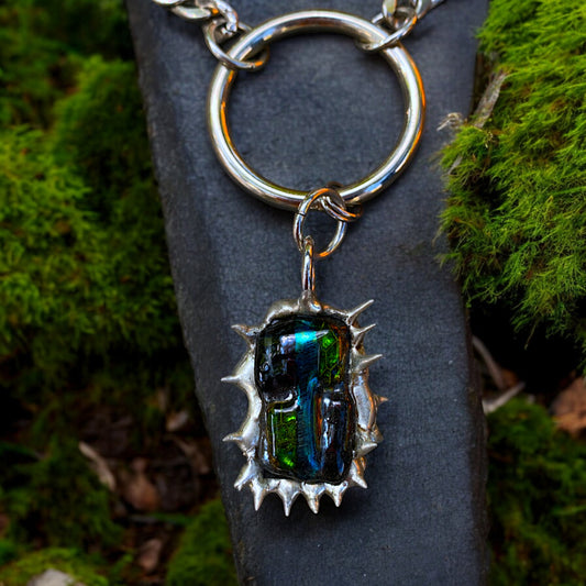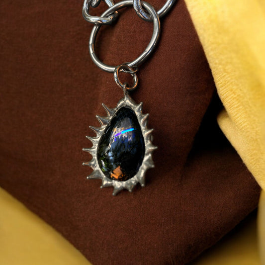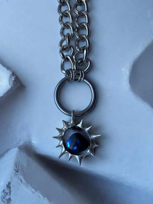 Labradorite Creature | Spiky Fused Glass O Ring Necklace