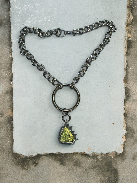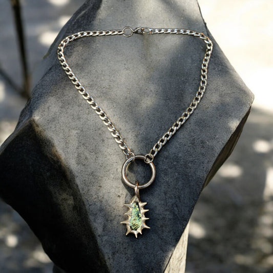 Moss Creature | Spiked Fused Glass O Ring Necklace