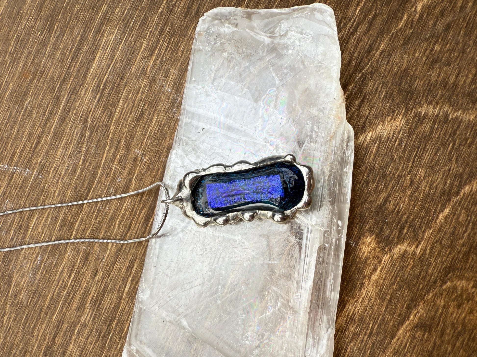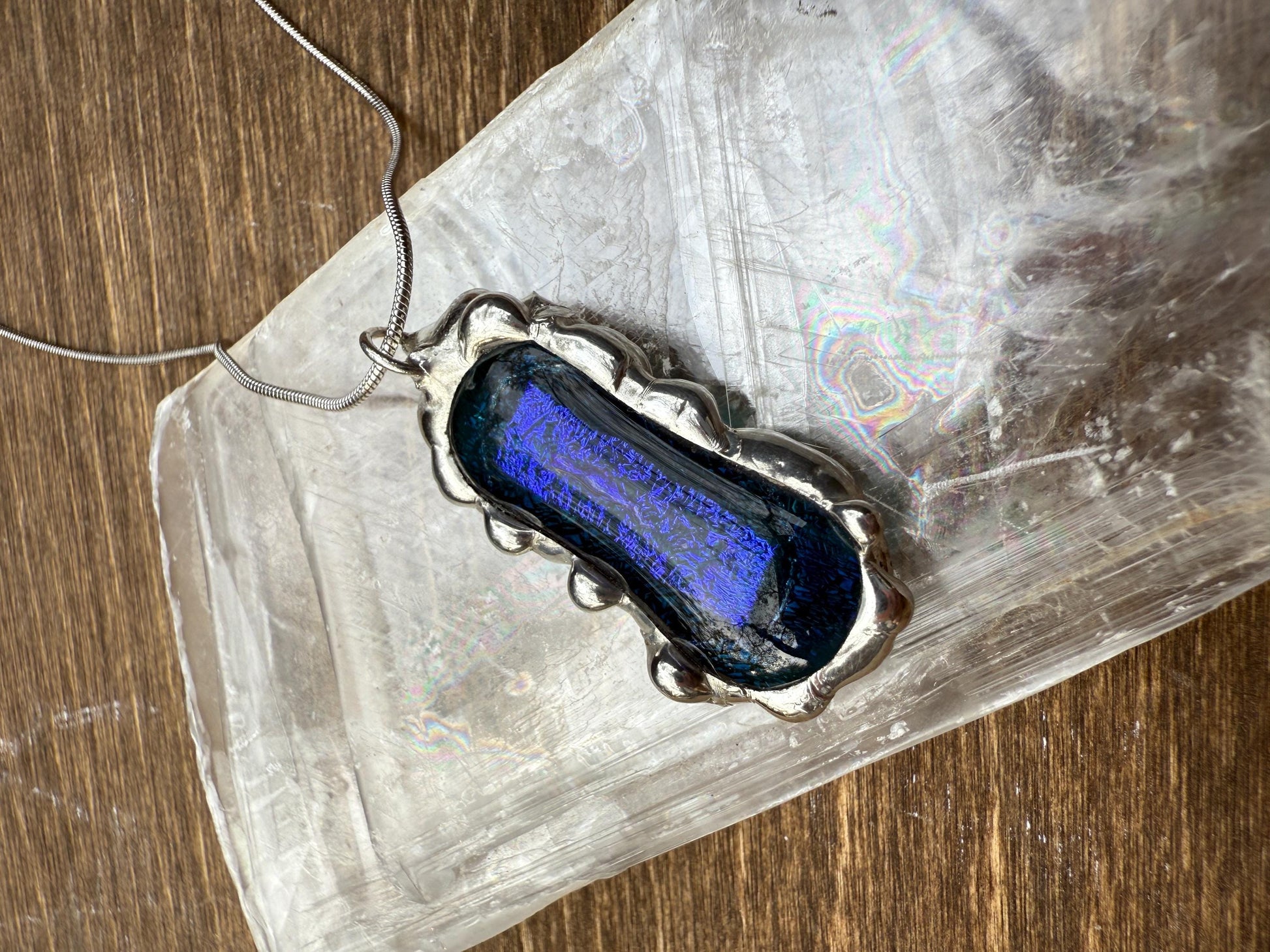 Cobalt Blue Iridescent Fused Glass Pendant | Vaporwave Brutalist Handmade Wearable Art + Whimsigoth Fashion